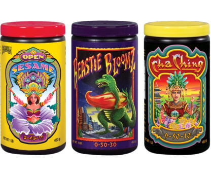 FoxFarm designed their soluble fertilizers to work together as part of a sequential feeding schedule for hydroponic and conventional growers. Using FoxFarm’s soluble plant foods on your plants is like putting your plants on an Olympic training diet. Check out Open Sesame®, Beastie Bloomz® and Cha Ching®, and see the results for yourself!