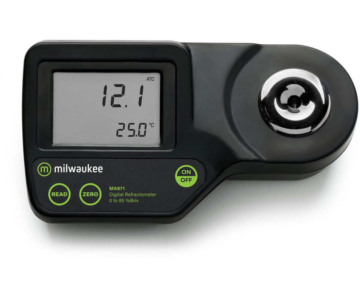Range 0-85% Brix, resolution 0.1%, units come with battery.